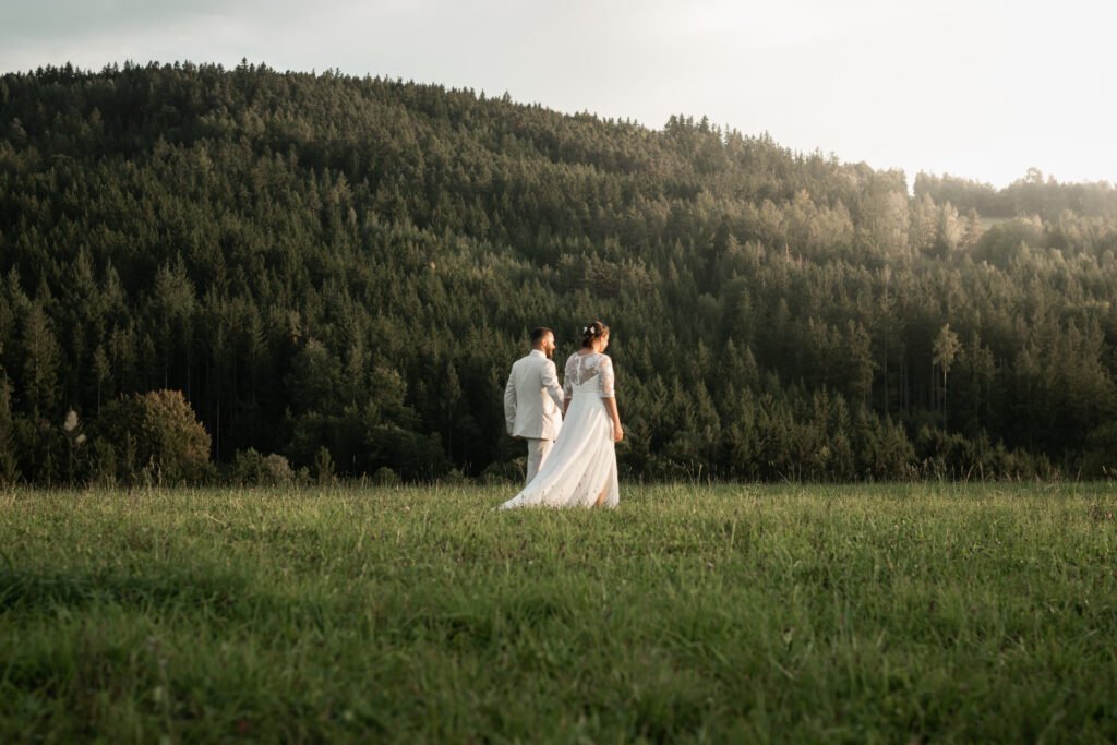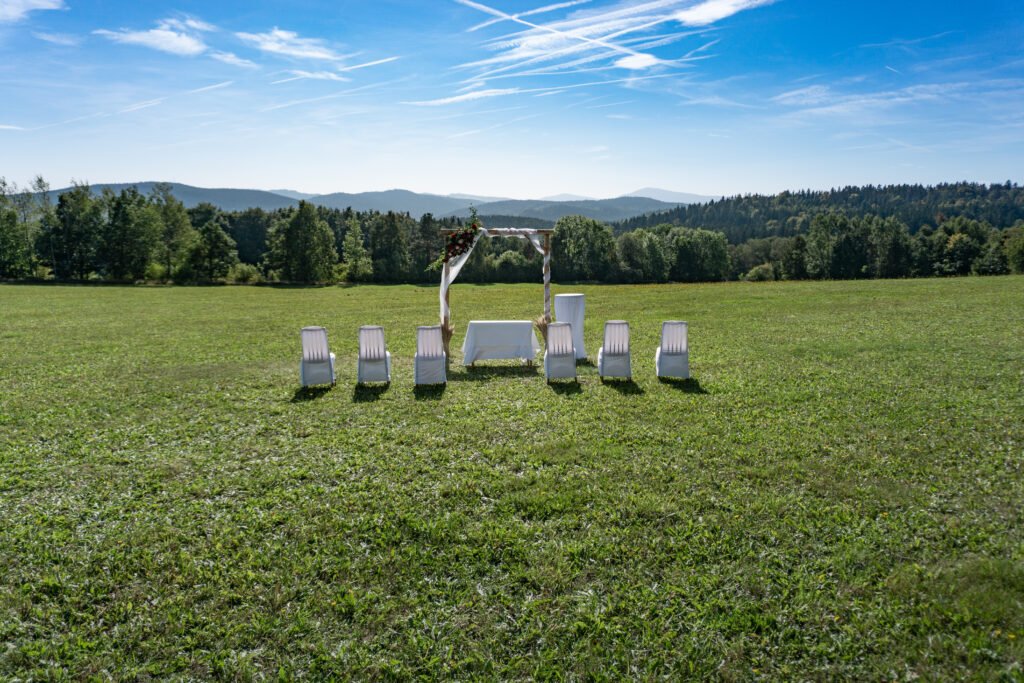 Amidst the picturesque meadows of the Czech Republic, Maru and Michael declared their love for one another. Their most cherished day was shared with family, who gathered to witness the heartfelt vows. The ceremony was elegantly simple yet deeply romantic, framed by breathtaking scenery that made their commitment even more enchanting.